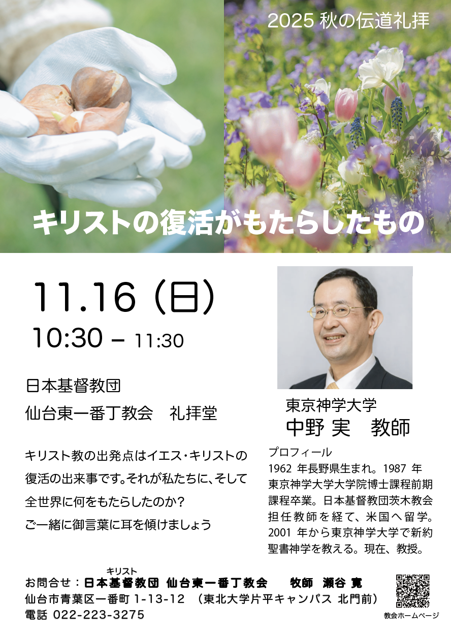 説教「キリストの復活がもたらしたもの」 中野 実 教師(東京神学大学)